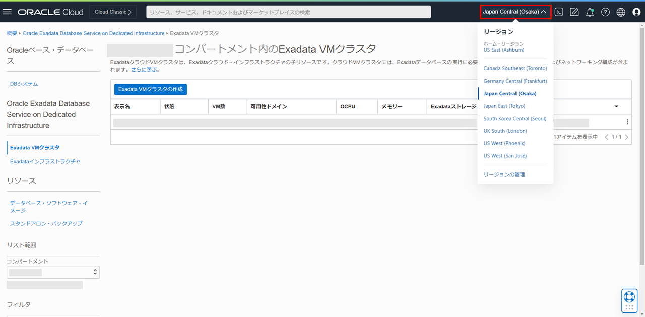 ここでは、OCIコンソールからExaDB-Dで別リージョン間(東京、大阪)でのData Guardを構成する手順について紹介します。東京をプライマリ、大阪をスタンバイとして構成します。使用するリージョンは任意です。