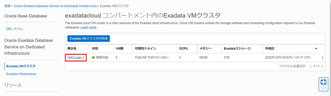 - 101 : ExaDB-Dを使おうを通じて、プライマリ・データベースのリージョン(本ガイドでは東京リージョン)でExaDB-Dの作成が完了していること。