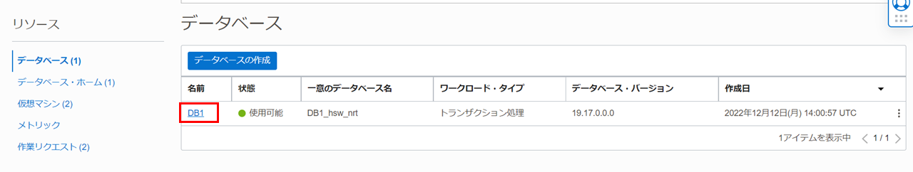 データベースの一覧から対象のデータベースの名前をクリックします。