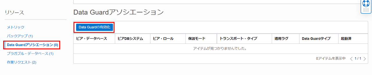 リソースの一覧からData Guardアソシエーションをクリックし、Data Guardの有効化をクリックします。