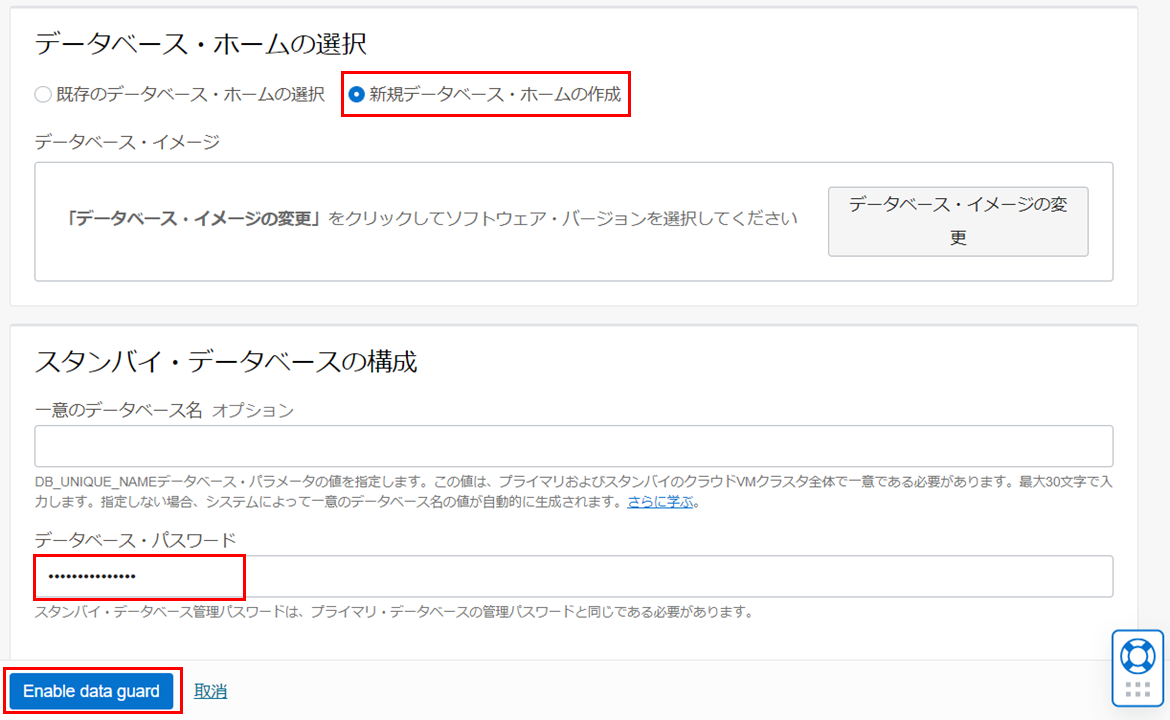 - データベース・イメージの変更 - カスタム・イメージを使用したい場合はデータベース・イメージの変更ボタンをクリックし、作成済みのカスタム・イメージを選択します。(本ガイドでは、変更はせずに進みます。)