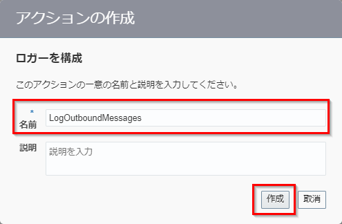 名前に LogOutboundMessages と入力し、「作成」 をクリックします。
