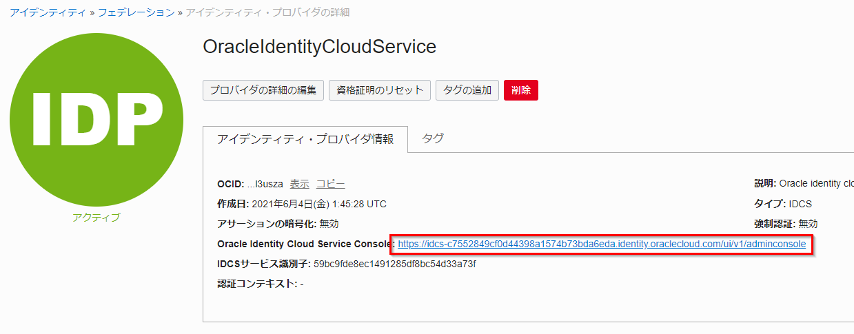 Oracle Identity Cloud Service Console の URL をクリックします。