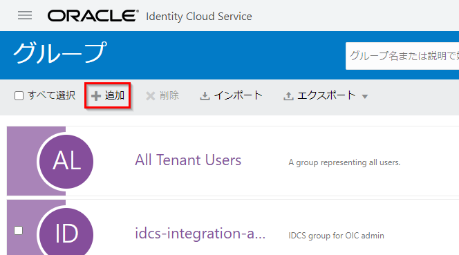 IDCS 管理コンソールを利用し、IDCS グループを作成します