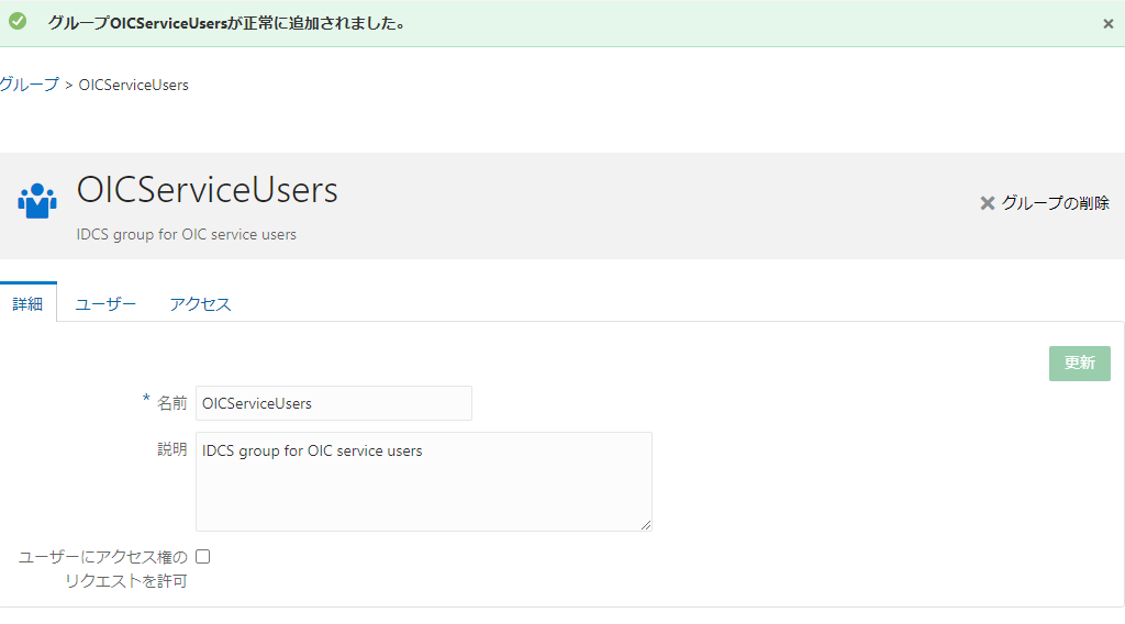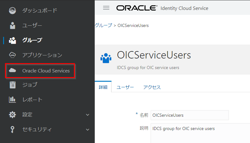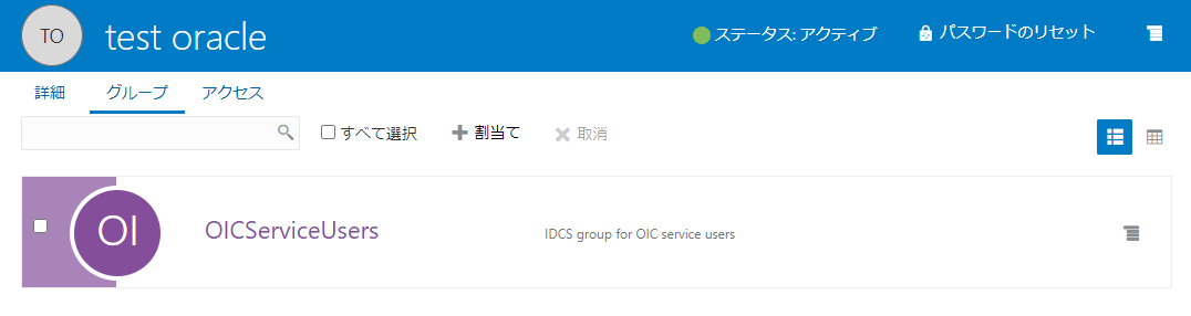 グループタブをクリックし、OICServiceUsers グループが割当てられていることを確認します