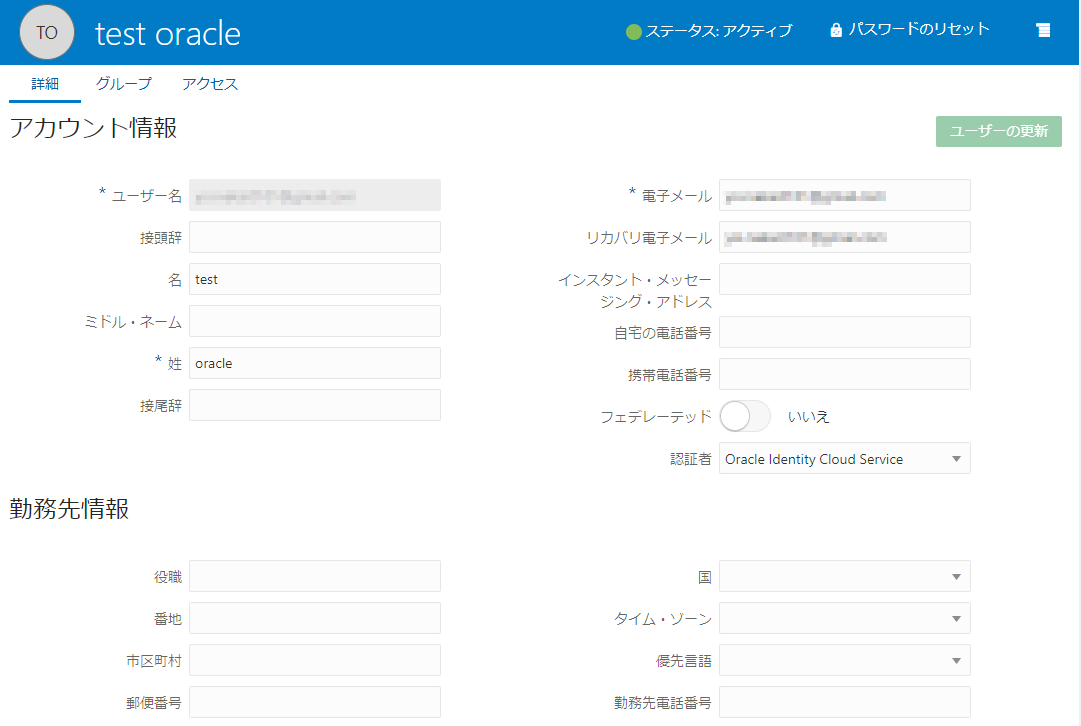 最後に、新規のIDCSユーザーを作成し、IDCS グループに割り当てます