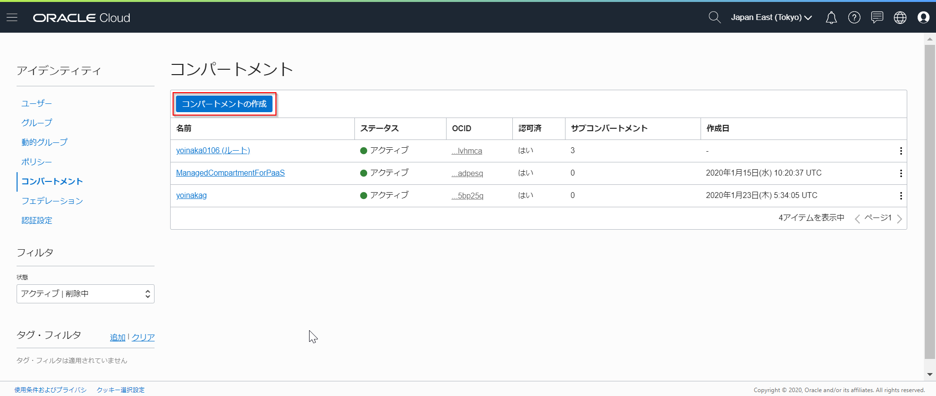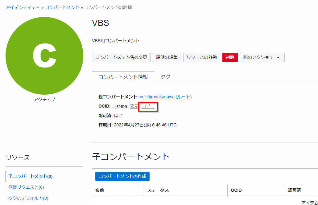 - OCID:コンパートメントOCID