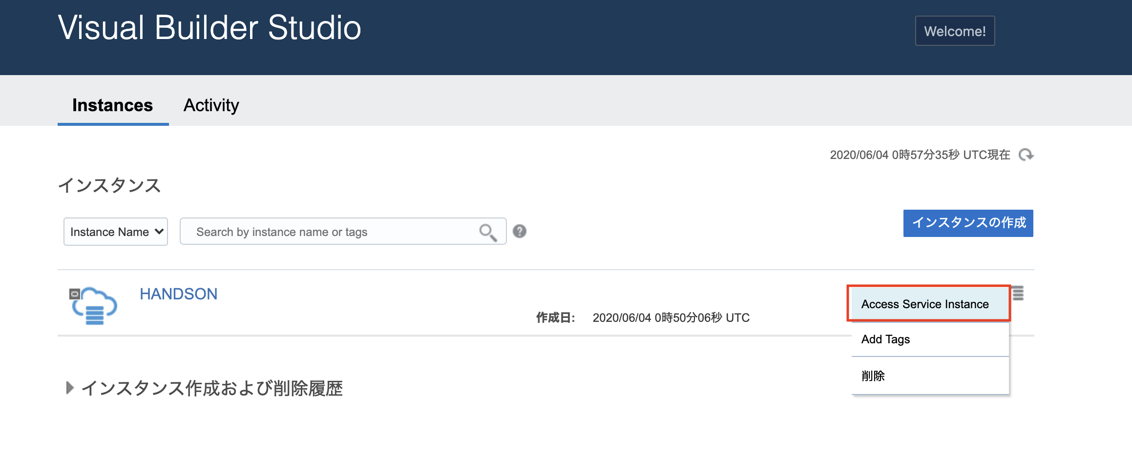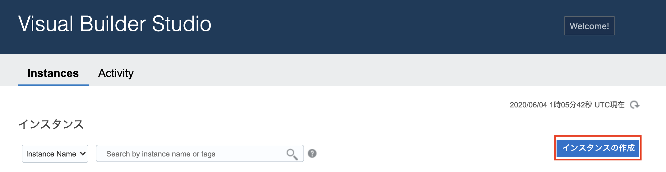 Visual Builder Studioのインスタンス画面が開きます。
