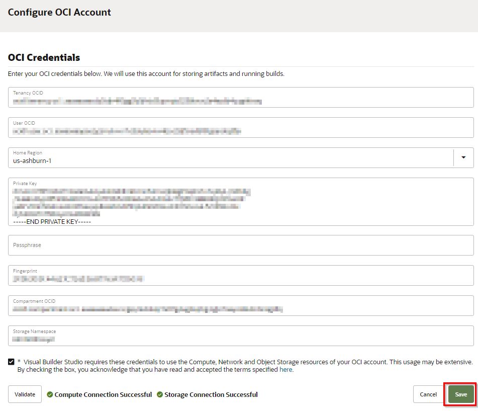 ダウンロードしたAPI秘密鍵は、1.Visual Builder Studioのセットアップで使用するので、保管しておいてください。