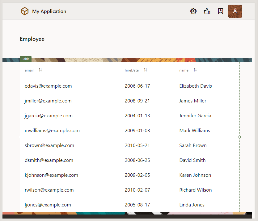 main-startに戻り、TableにEmployeeのデータが表示されます。