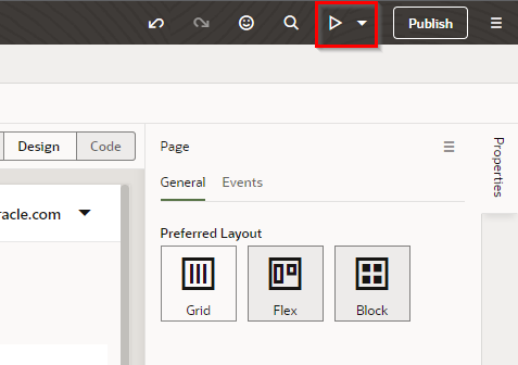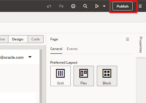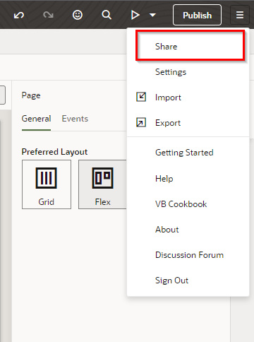 VBCSコンソール画面の右上にある"Publish"をクリックします。