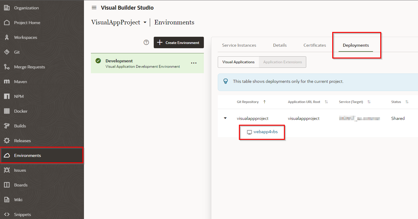 メンバーはURLを教えてもらって遷移するかもしくはVBSの"Environments”-“Deployments"から遷移することができます。