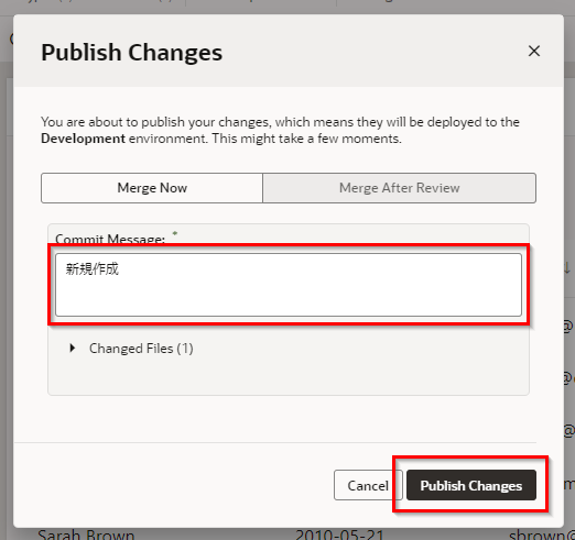 Commit Messageに任意のメッセージを入力し、“Publish Changes” をクリックします。