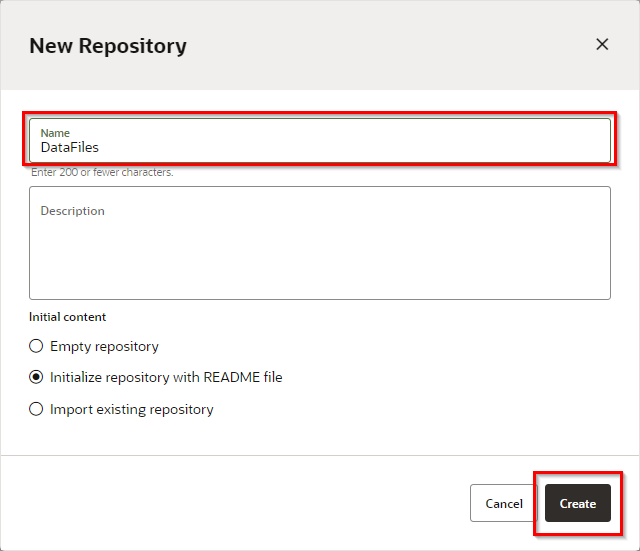 “Name"に"DataFiles"を入力し、“Create"をクリックします。