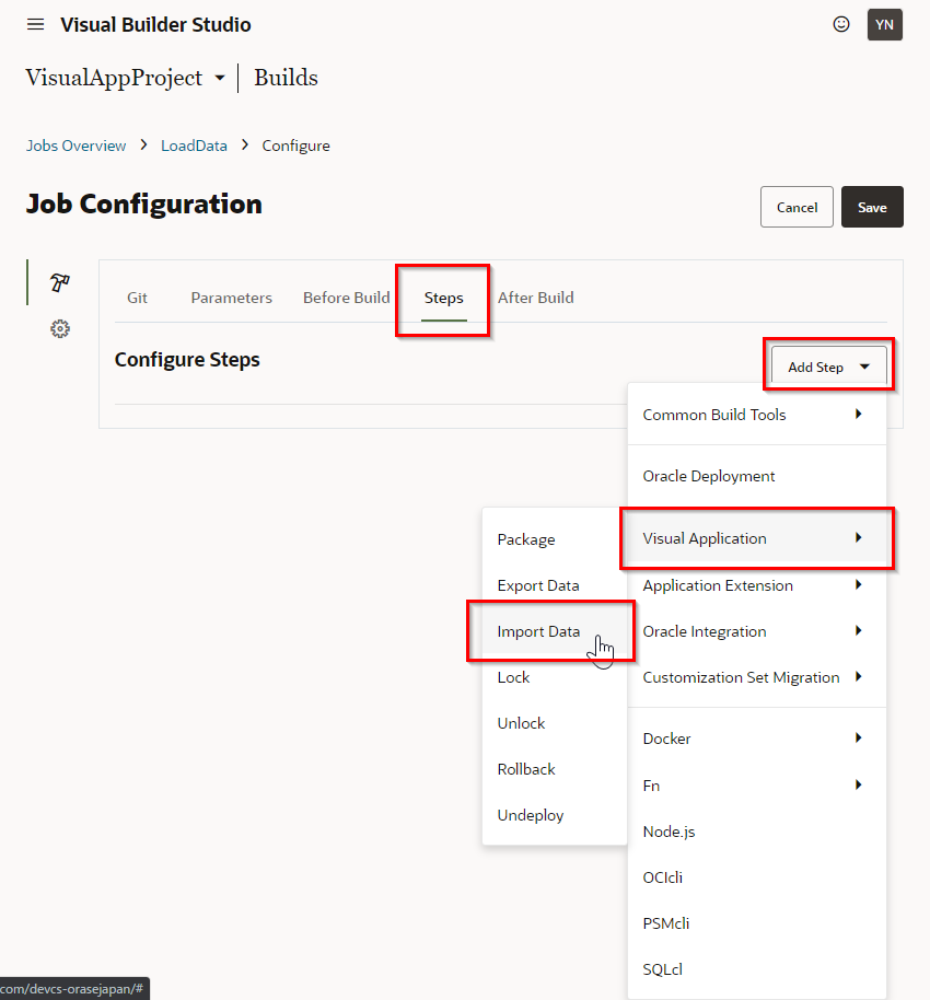 ここでは、Visual Builder Studioのセットアップを行います。
