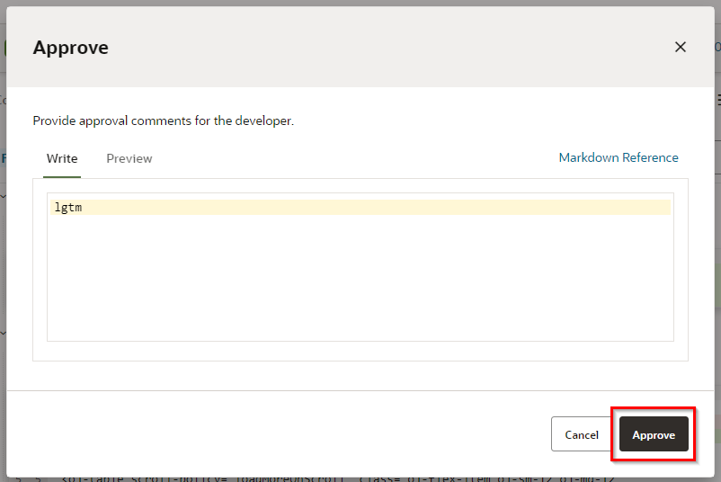 任意のコメントを入力し、“Approve"をクリックします。
