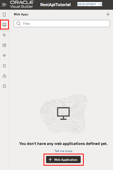 VBCS のビジュアル・アプリケーションは、1つ以上のWebアプリケーションまたはモバイル・アプリケーションを持ちます。 このチュートリアルでは、Webアプリケーションを作成します。