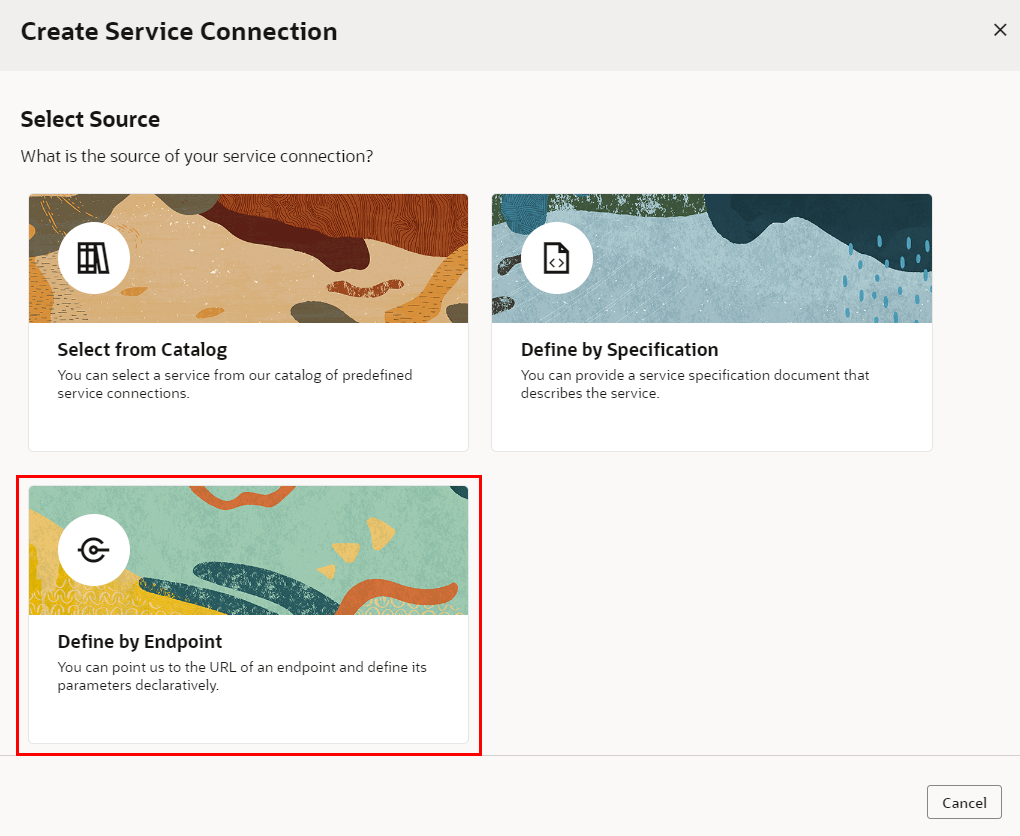 「Create Service Connection」 ポップアップ・ボックスが表示されたら、 「Define by Endpoint」を選択します。
