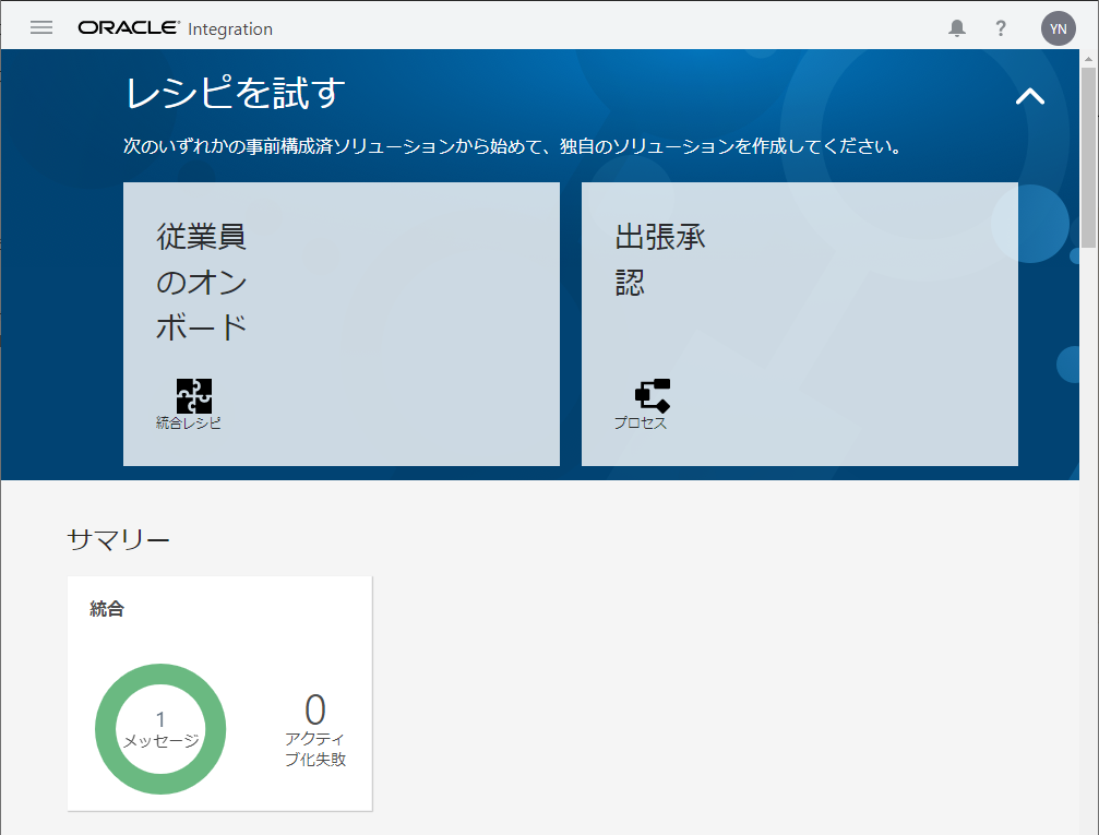 Web ブラウザを開き、提供された OIC インスタンスのURLを入力します。もしくはOCIのコンソールから「開発者サービス」-「アプリケーション統合」から作成済みのOICインスタンスを選択し、「サービス・コンソール」からOICコンソールを開きます。