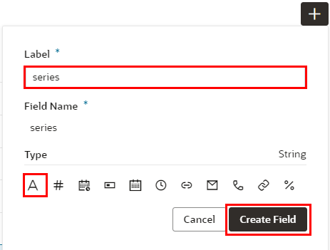 | 「Field Name」 | series | 追加するフィールドを識別するための名前。Labelを入力すると自動的に設定されます。 |