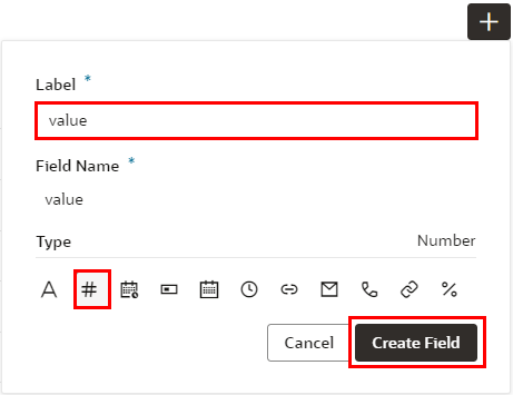 | 「Type」 | Number (「#」のアイコン) | 追加するフィールドのデータ型 |