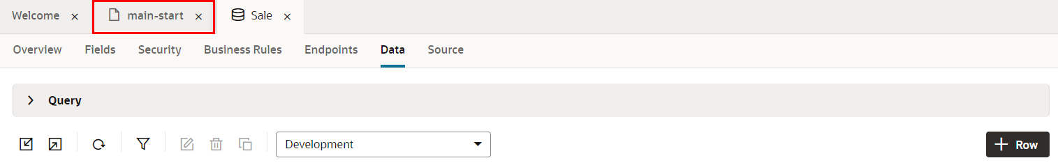 アプリケーション・デザイナで main-start ページを開きます。